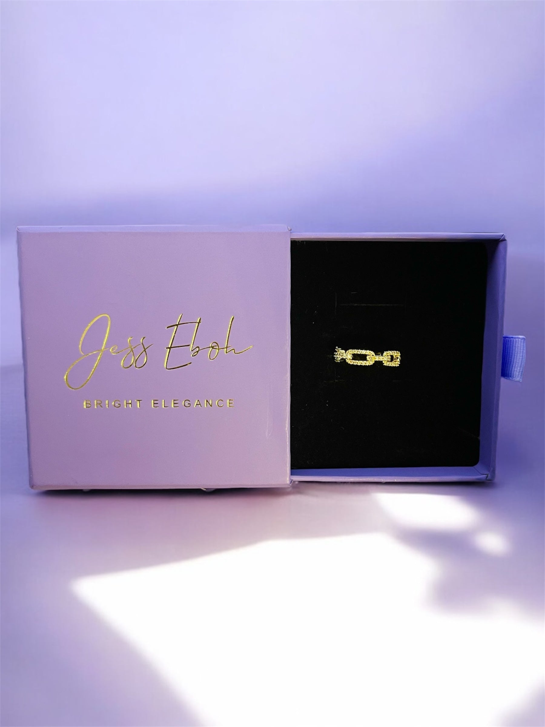 Elevate your elegance with the Trisha ring, featuring exquisite zircon-encrusted chains set in 18K gold plating. Jess Eboh’s summer collection designed for durability and style, this waterproof ladies' ring combines sophisticated sparkle with lasting wearability, making it a refined choice for everyday luxury.